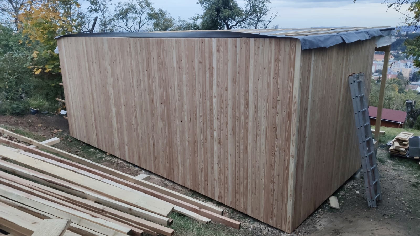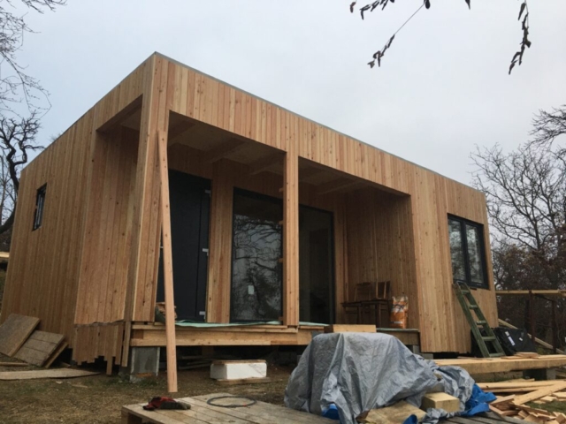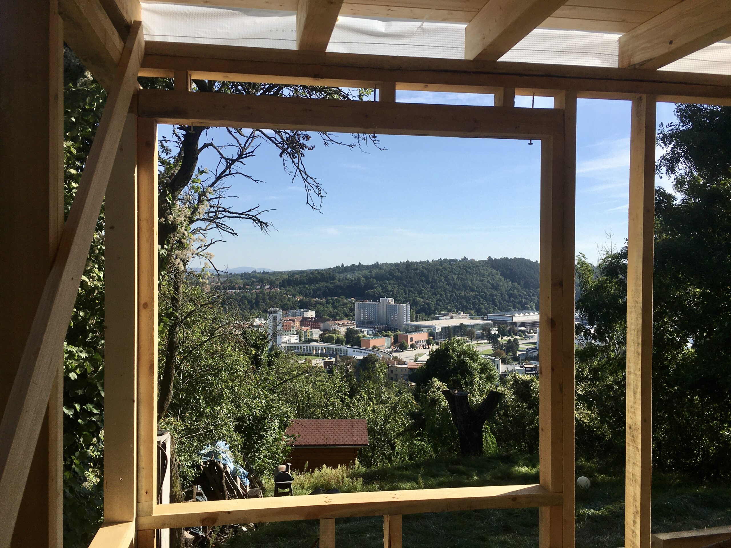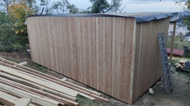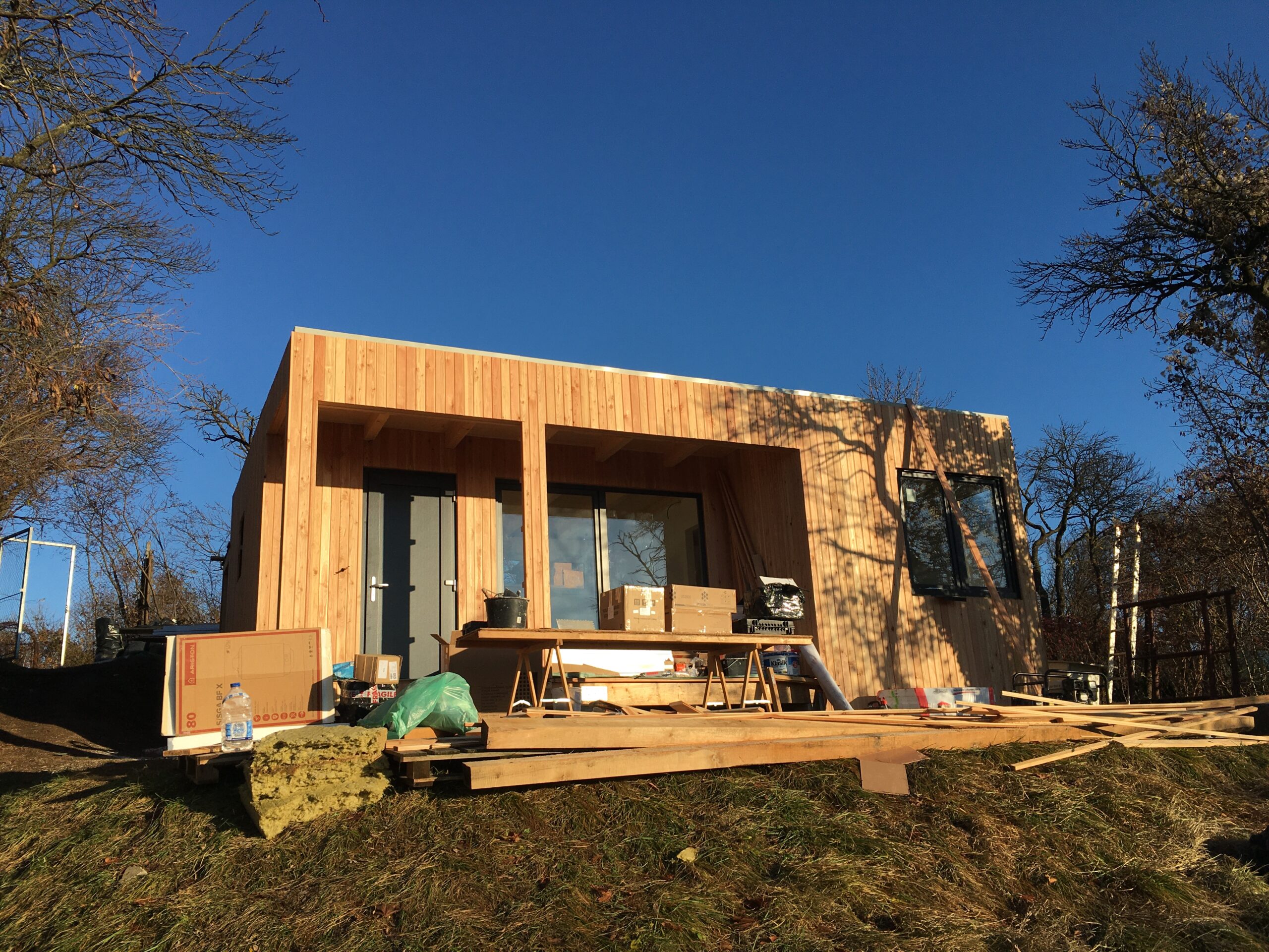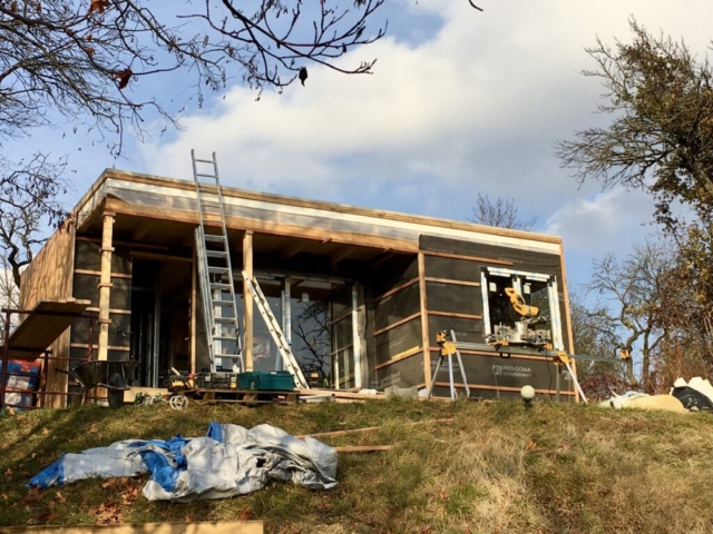 Žlutý kopec rozhodně dostál svému jménu. Dřevostavbu bylo nutné kompletně montovat na místě bez využití těžké techniky. Především z tohoto důvodu se nejedná o domek mobilní. V případě nutnosti ho lze kompletně rozebrat a přemístit jinam.