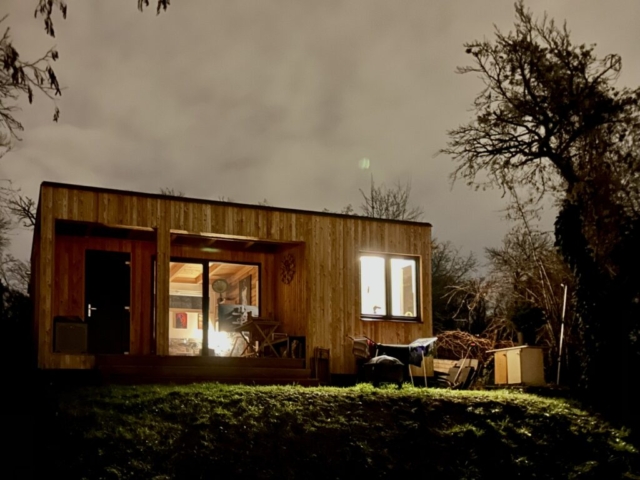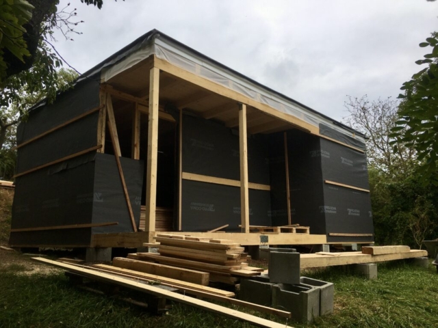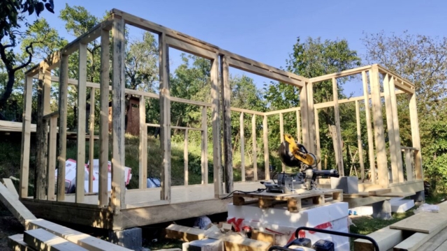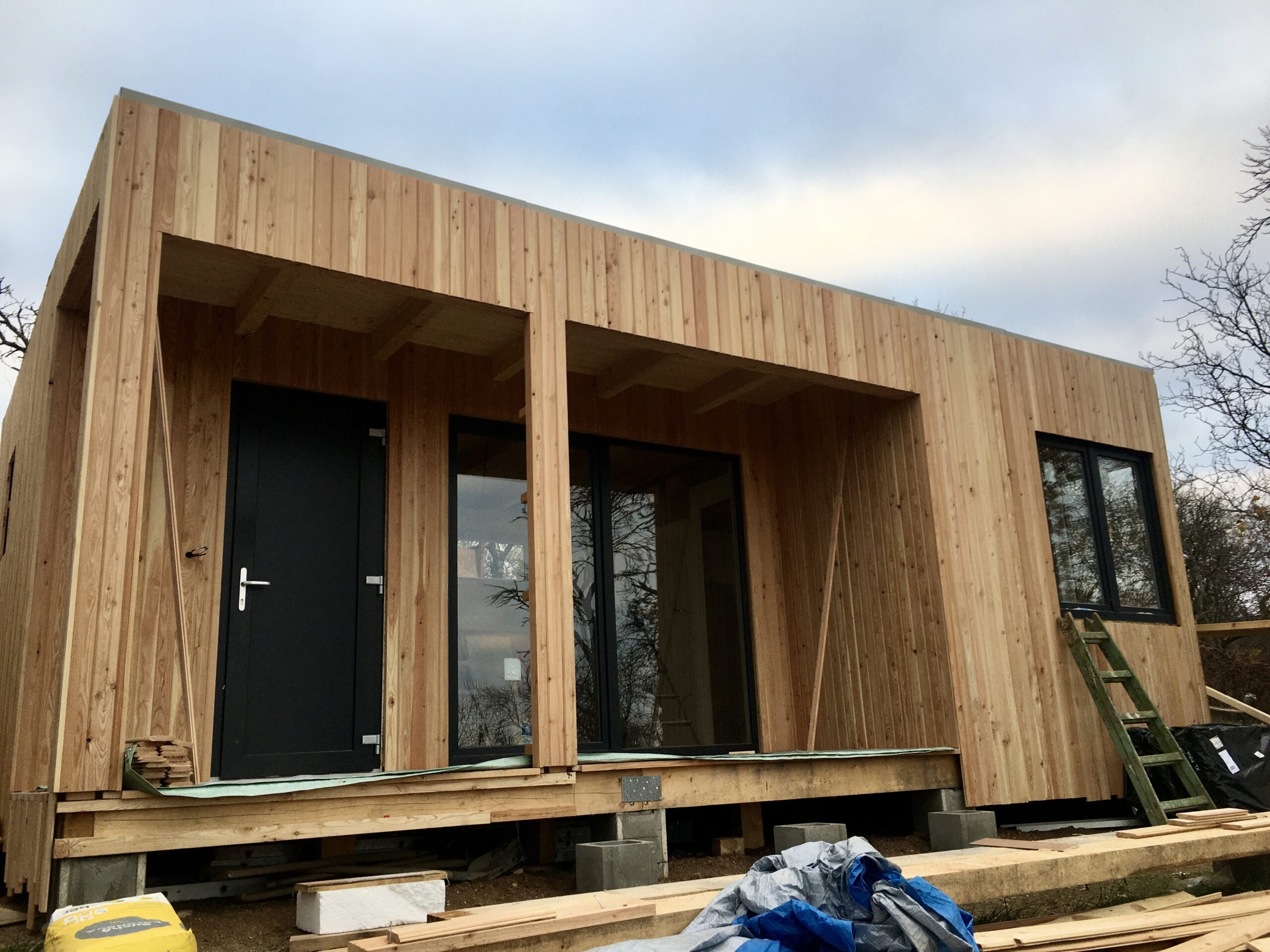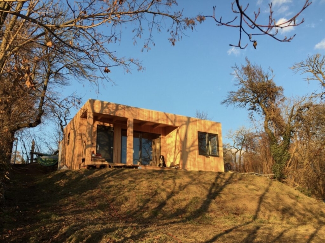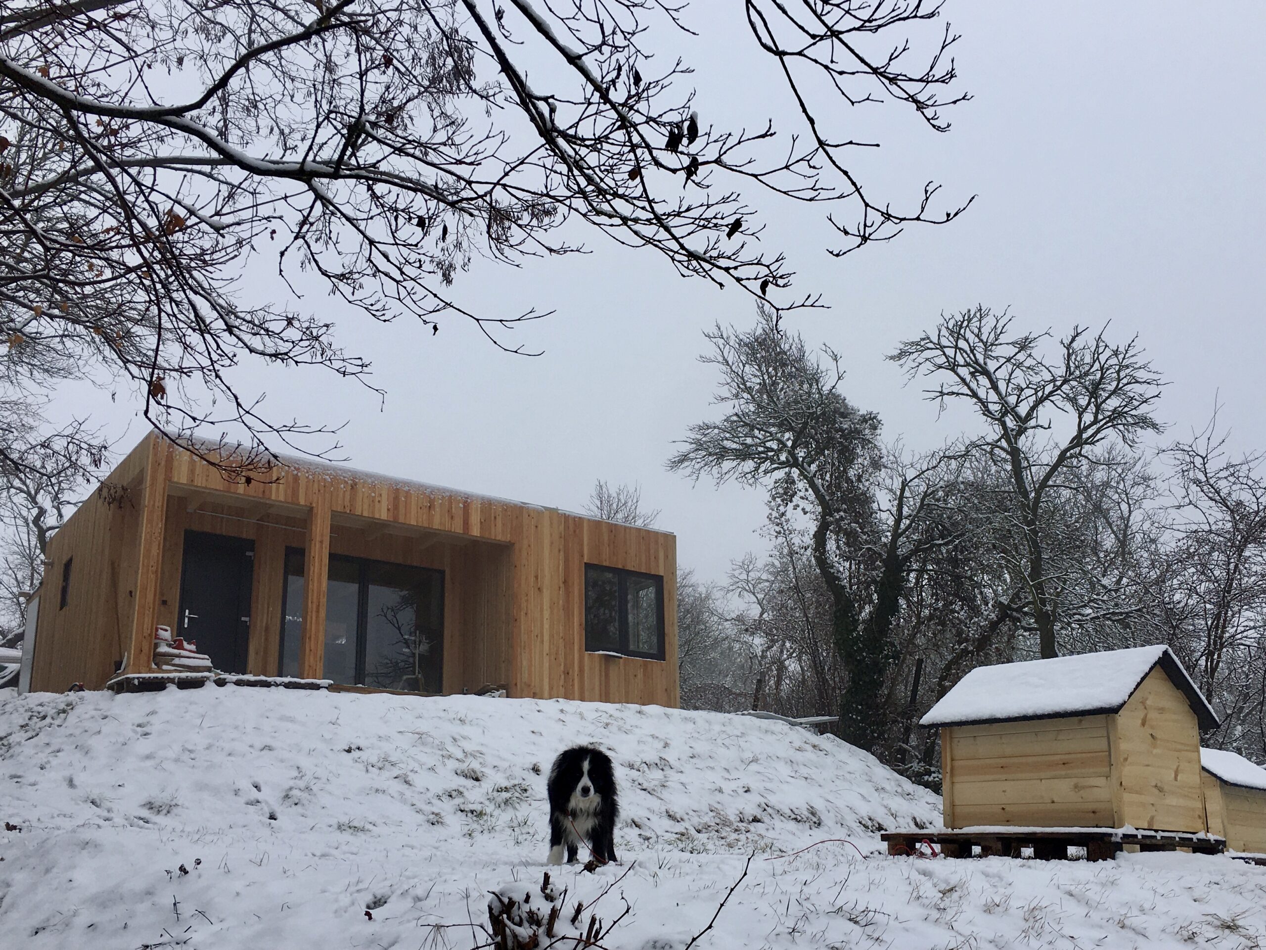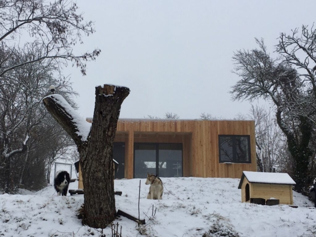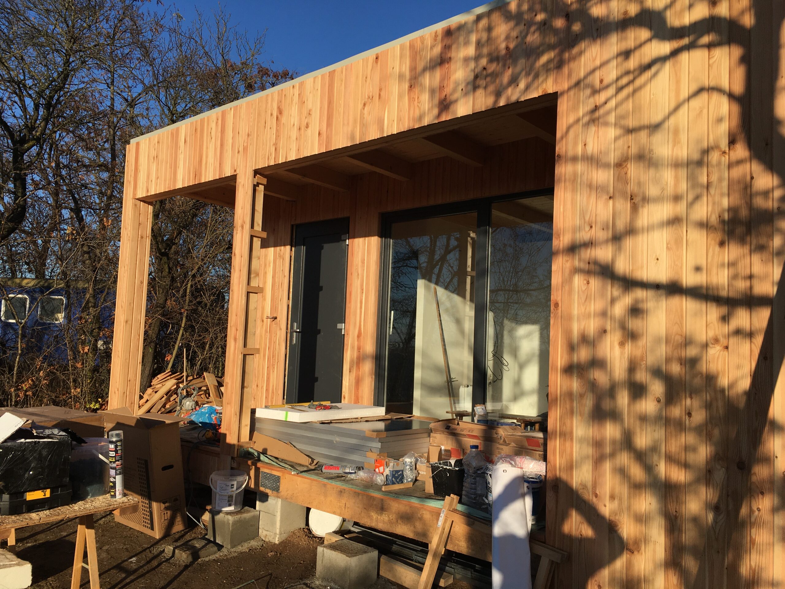 Žlutý kopec rozhodně dostál svému jménu. Dřevostavbu bylo nutné kompletně montovat na místě bez využití těžké techniky. Především z tohoto důvodu se nejedná o domek mobilní. V případě nutnosti ho lze kompletně rozebrat a přemístit jinam.