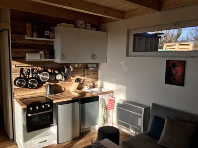 Přestože se nacházíme přímo uprostřed Brna, nejsou na Žlutém kopci v dosahu žádné sítě, kromě sezónního vodovodu. Bylo tedy třeba opět sáhnout k ověřenému off-grid řešení, které jsem vylepšil po zkušenostech ze SIDa. Sandberg je plně nezávislý na sítích a systému a jedná se o plnohodnotné malé bydlení. Vybavení a technologie odpovídají řešení popsanému v sekci Jak?.